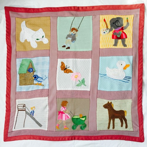 Vintage Handmade Embroidered Baby Crib Quilt Blanket Animals Girl Playing Ebay